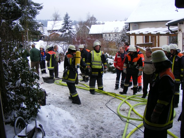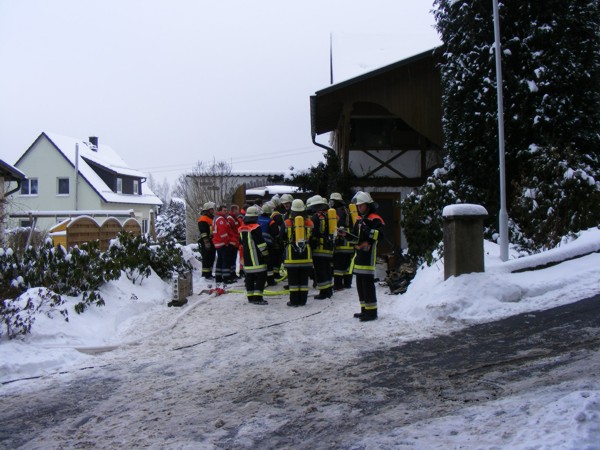 Statt in einer Garage brannte ein Kelleraum in einem Dreifamilienhaus. Bis zum Eintreffen der Feuerwehr konnte der Brand durch die Hausbewohner soweit unter Kontrolle gebracht werden, so das die Feuerwehr nur Nachlöscharbeiten durchführen musste. Die verrauchten Wohnungen wurden durch den Einsatz eines Überdrucklüfters vom Brandrauch befreit. ![]() ![]()