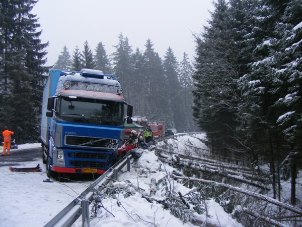 B 303 zwischen Seehaus und Silberhaus, Verkehrunfall mit LKW und PKW, eingeklemmte Person.