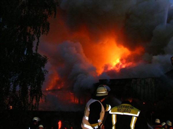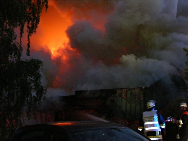 Feuer rasch zu einem Vollbrand der Halle entwickelte und auf den