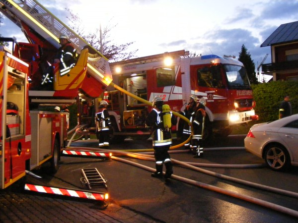 Großaufgebotes an Einsatzkräften und mehrerer eingesetzter Drehleitern,