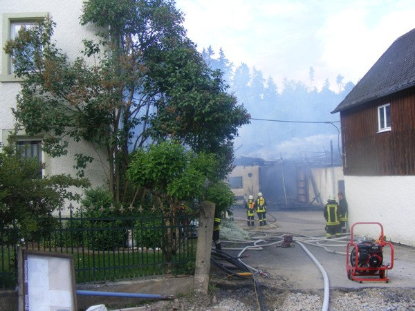 landwirtschaftlichen Anwesen ein Brand ausgebrochen. Eine Scheune stand