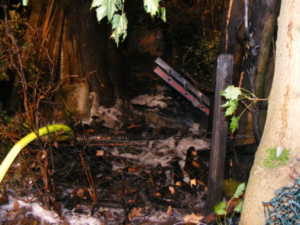 Tröstau, Bühlweg, Brand eines Gartenhauses.