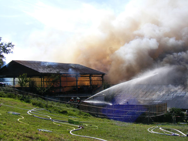 Eine Halle sowie der Stall eines landwirtschaftlichen Betriebes waren