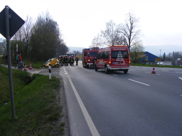 B 303 Tröstau, Einfahrt EDEKA Verkehrsunfall mit PKW.