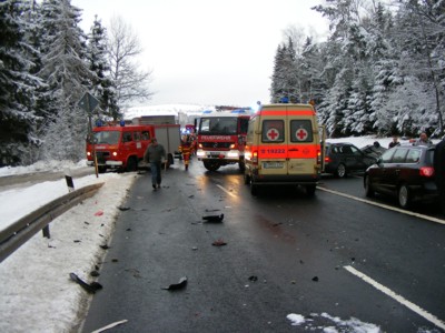 war eingeklemmte Person in PKW. Eingesetzt waren die Feuerwehren Tröstau und Nagel. Bei Eintreffen der Feuerwehr hat die Person das Fahrzeug aus eigener Kraft verlassen. Die Bundesstraße gesperrt, da Betriebsstoffe ausgelaufen waren und gebunden wurden. Zusätzlich befand sich eine längere Ölspur auf der Fahrbahn. |