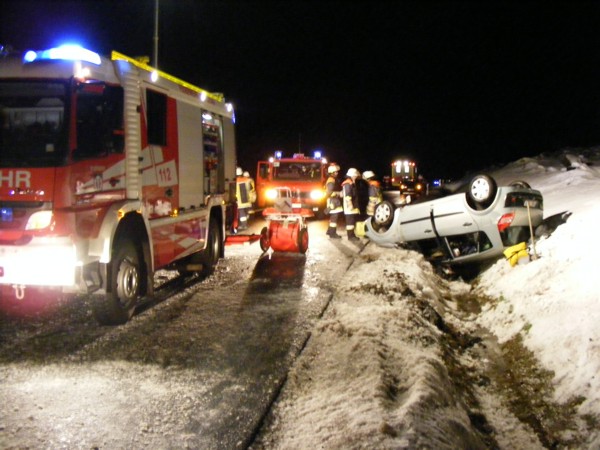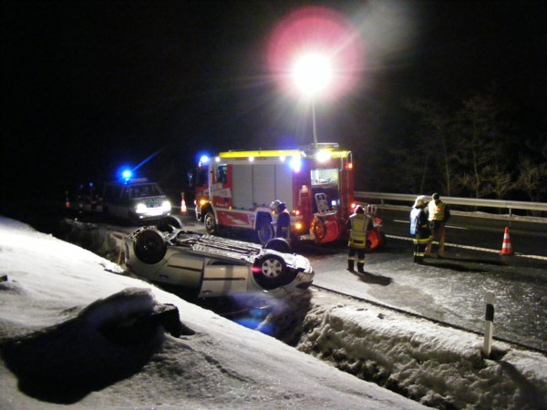 war: B 303 Silberhausberg, nach Verkehrsunfall mit PKW Fahrbahnverunreinigung. Eingesetzt waren die Feuerwehren Tröstau und Leupolsdorf. Durch plötzlich überfrierende Nässe waren die Fahrbahnen spiegelglatt. Es wurden auslaufende Betriebsstoffe aufgefangen und die Einsatzstelle gesichert, bis der Winterdienst gestreut und Schnee geräumt hatte. Zur Unterstützung der Polizei wurde der Verkehr wechselseitig an der Einsatzstelle vorbeigeleitet. |
